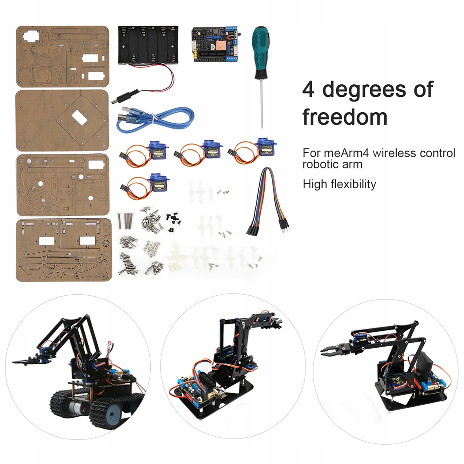 1. Для беспроводного управления манипулятором meArm4 с 4 степенями свободы и высокой гибкостью
