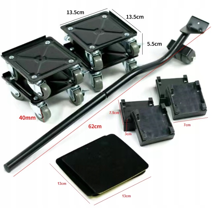 Комплект для транспортировки мебели – грузоподъемность 300 кг | Длинная ручка | Тормоза | Профессиональное оборудование