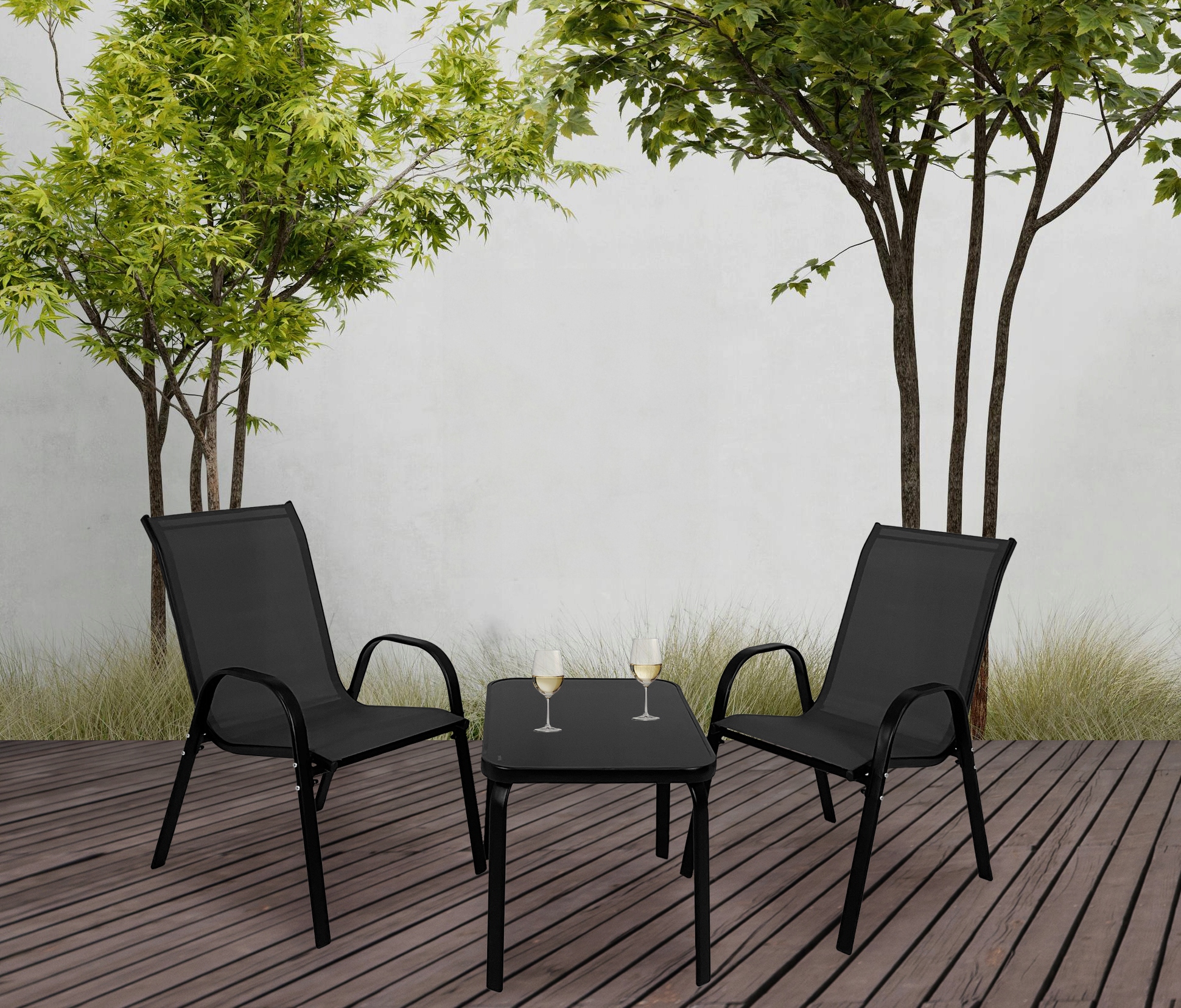 КОМПЛЕКТ САДОВИХ МЕБЛІВ БАЛКОН ТЕРАСА СТІЛ 2x СТІЛЬЦІ MALAGA ЧОРНИЙ