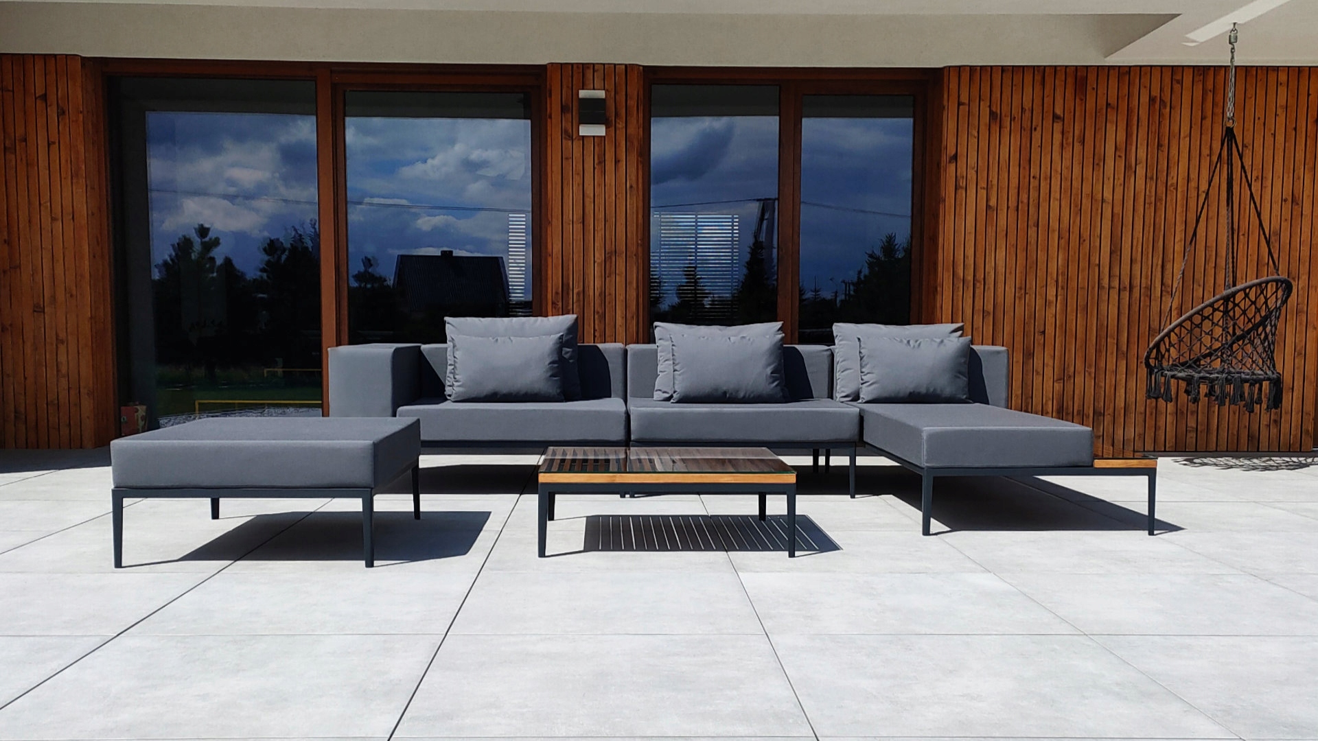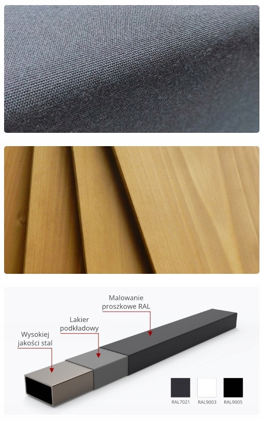 Садовая мебель Catalonia — это уникальный и современный комплект премиум-класса красивого графитового цвета. Набор изготовлен из стали, которая защищена от атмосферных воздействий и механических повреждений порошковым покрытием. Материалы, используемые в сиденьях и подушках, сертифицированы и обладают высокой устойчивостью к ультрафиолетовому излучению. Все выполнено из дерева и стекла, защищенных от изменения погодных условий. Комплект представляет собой модульную систему, а это значит, что мебель можно свободно компоновать, чтобы она идеально соответствовала размерам террасы. Мебель изготавливается и собирается вручную в Польше из польских продуктов, с вниманием к деталям и отделке. Благодаря этому они обладают уникальным качеством и стилем, которые выделяют их среди других.