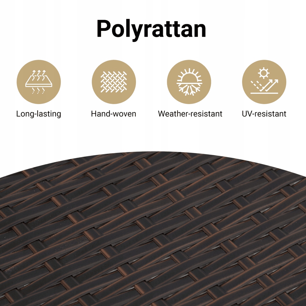 - Прочный материал: Изготовлен из полиэтиленового ротанга, известного как полиротанг, легкий, легко чистится и устойчив к погодным условиям.