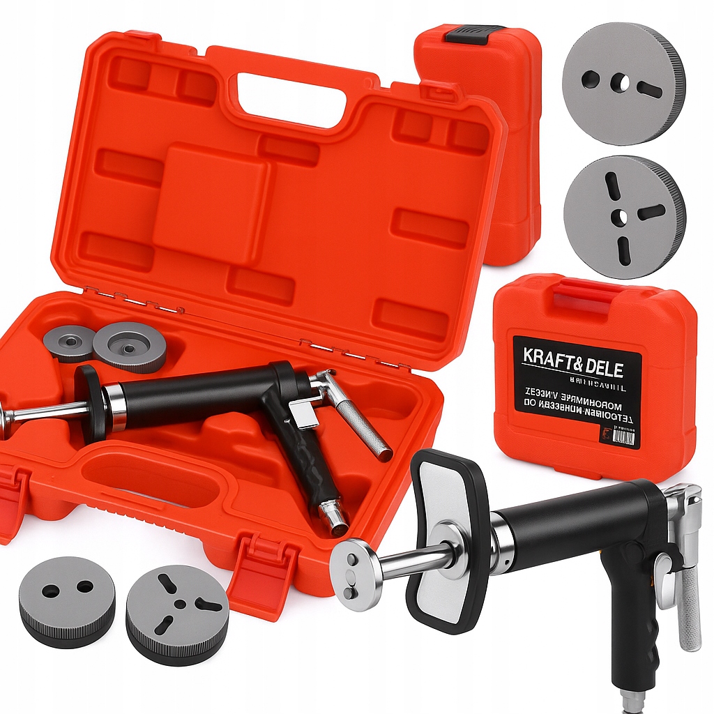 Набор пневматических сепараторов для тормозных суппортов - это расширенный инструмент, который был разработан для эффективной работы и обслуживания тормозных систем . Используя сжатые ВВС , обслуживающие работы не только быстрые, но и удобные и безопасные. Наш набор идеально подходит для: