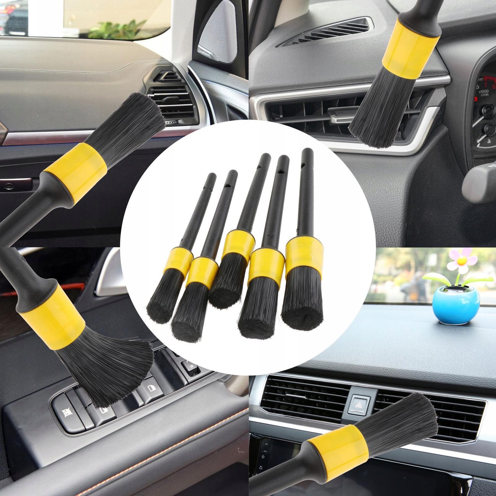 Набор из 5 кистей для очистки автомобилей, для сухого и влажного использования, мягких щетинок, очистки