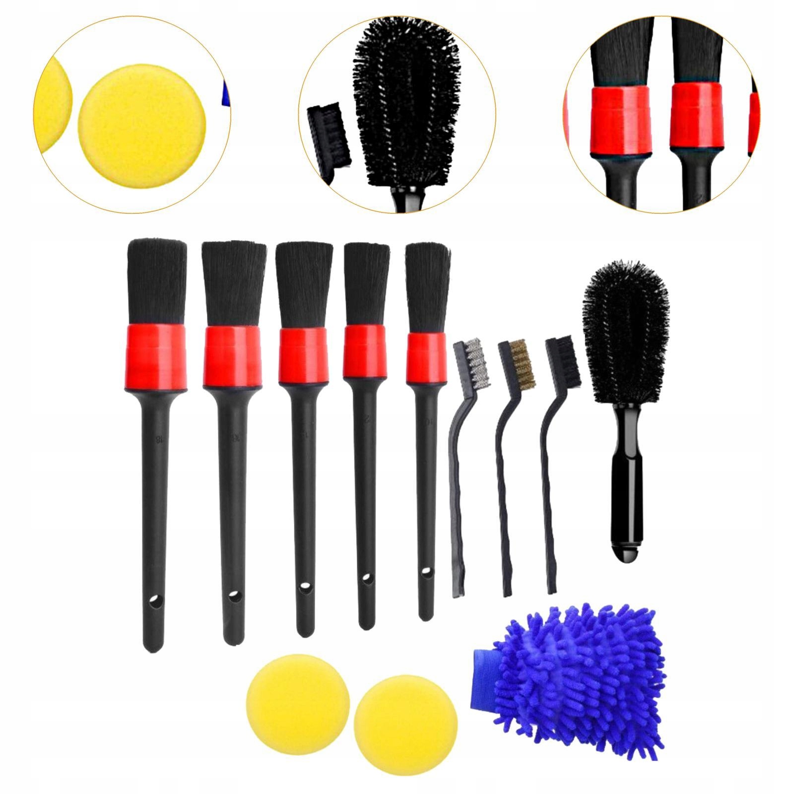 [Набор]: набор кистей для детализации автомобиля, содержит различные чистящие щетки, разработанные специально для чистки деталей и вентиляционных отверстий, отвечающих вашим различным потребностям.