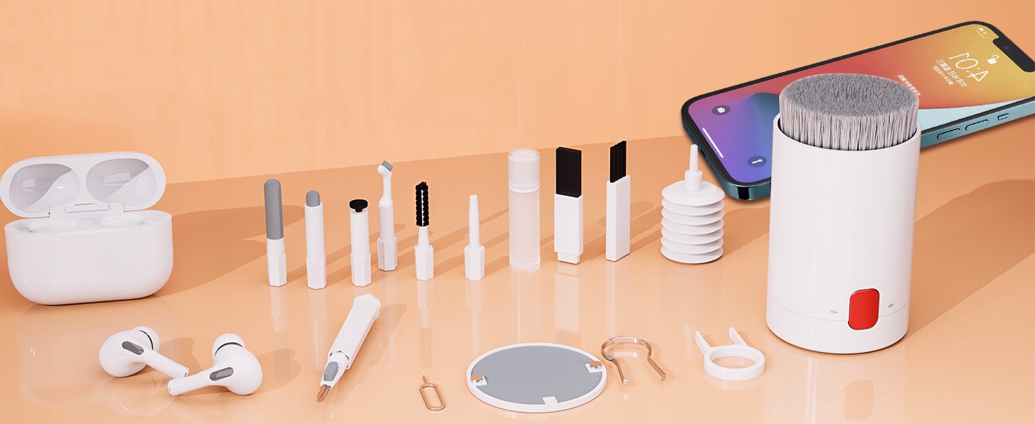 💧Флокирующая губка — идеальный инструмент для чистки чехла-зарядного устройства для наушников, а металлический наконечник и щетка высокой плотности — для чистки звуковых выходов наушников.