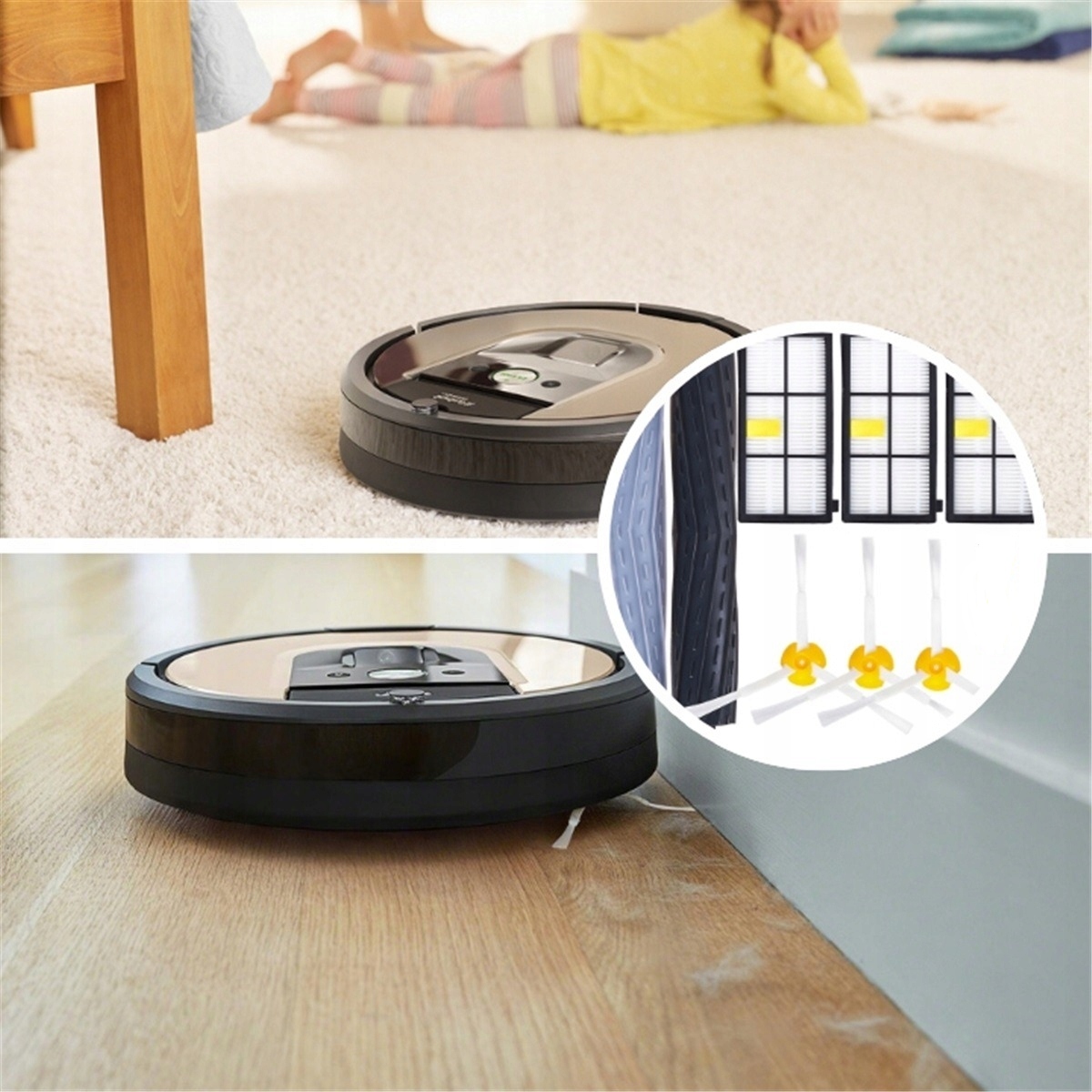 Резиновые щетки + фильтры HEPA + боковые щетки - полный сменный комплект!