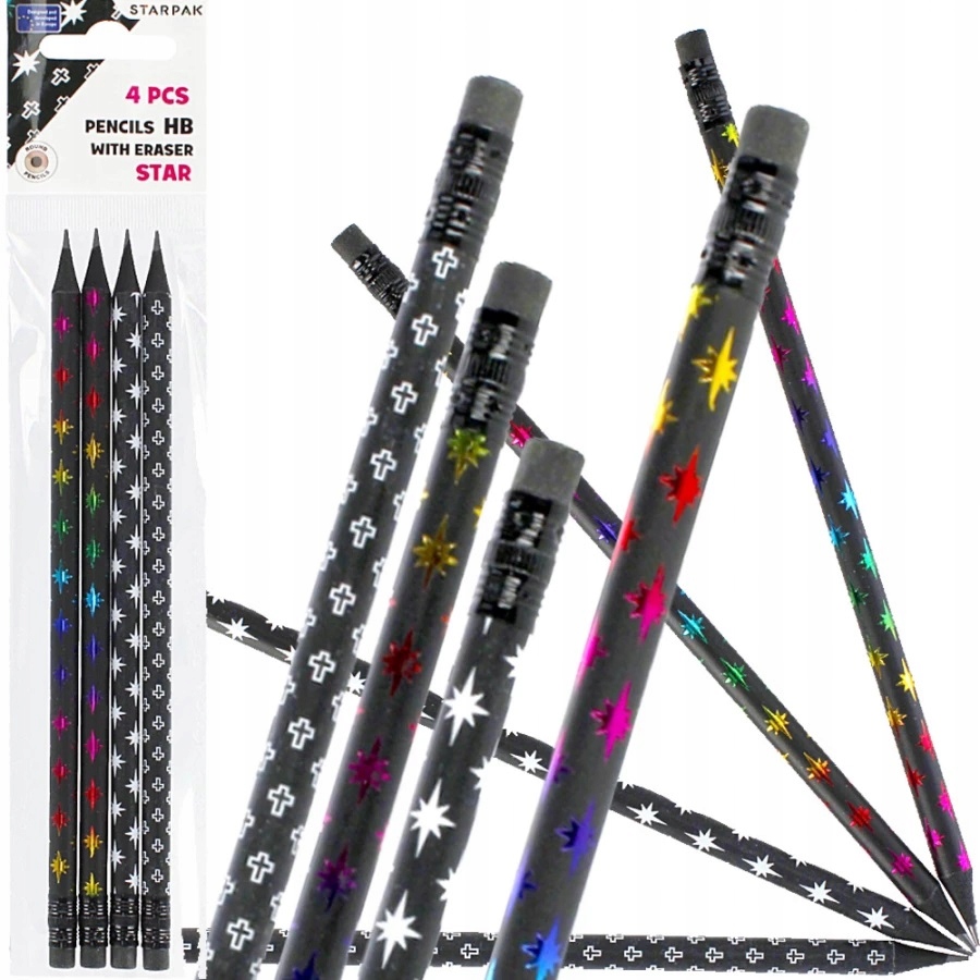 Набор школьных карандашей HB с ластиком Black 4 PCS