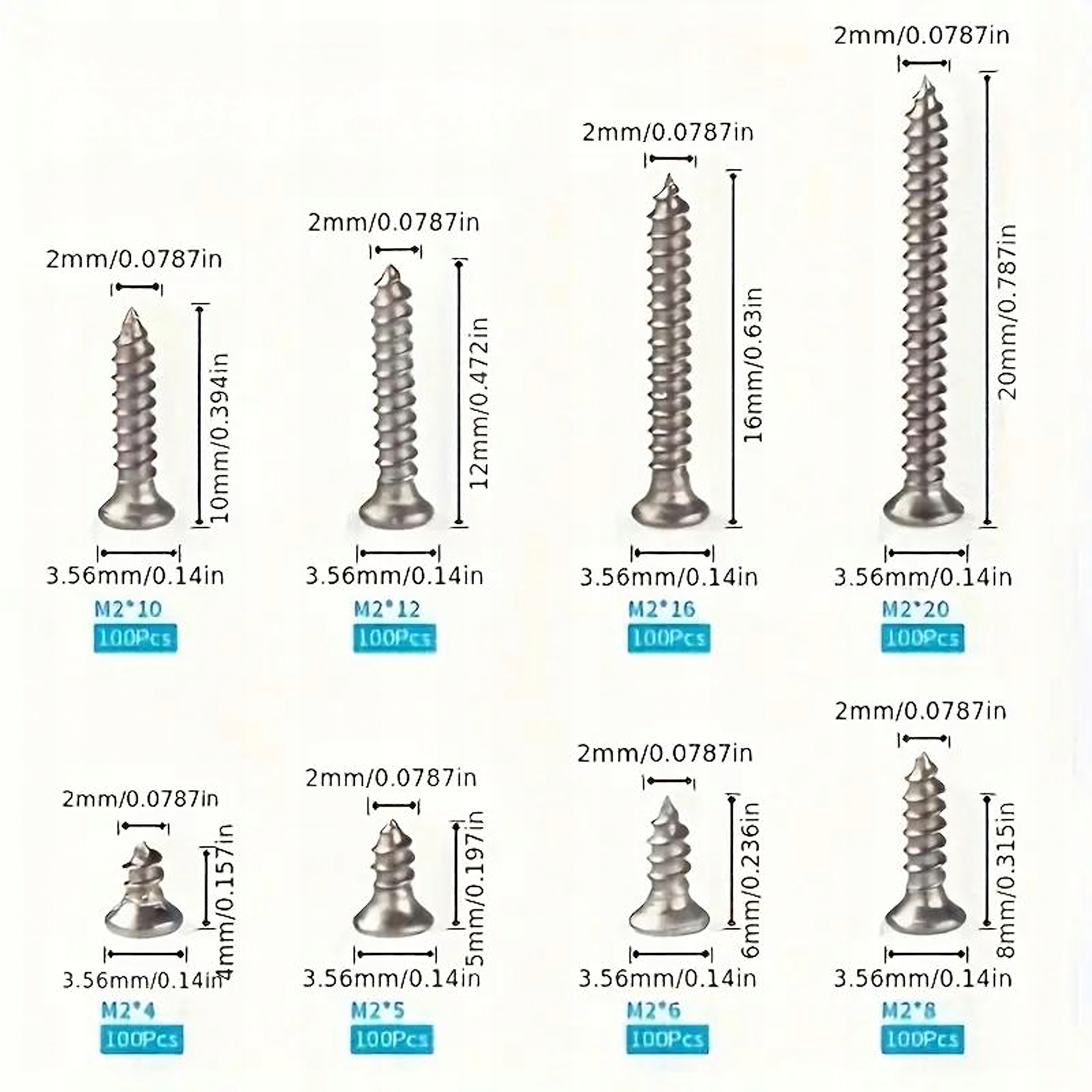 НАБОР ВИНТОВ УНИВЕРСАЛЬНЫЕ ВИНТЫ ДЛЯ ДЕРЕВА М2 СТАЛЬ НАБОР 800 ШТ.