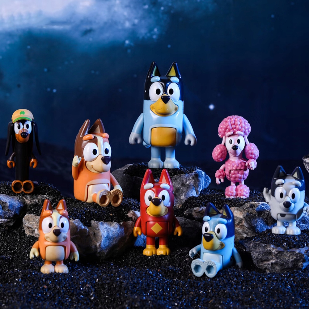 Bluey Family Figures Set, 8 Bluey Cegrines, установленные с Blue Family