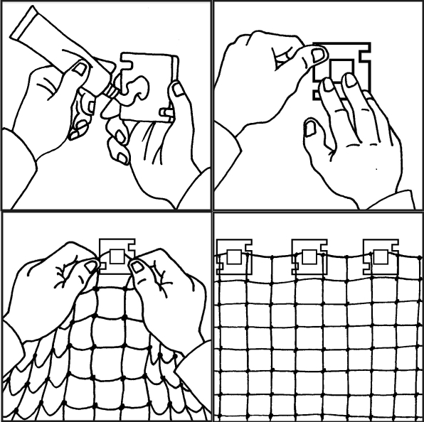 ОЧЕНЬ ЛЕГКАЯ, НЕИНВАЗИВНАЯ УСТАНОВКА БАЛКОННОЙ СЕТКИ. СЦЕПКИ МОЖНО ПРИКРЕПИТЬ (с помощью клея JACOPIC) К ЛЮБОЙ ПОВЕРХНОСТИ, НАПРИМЕР: СТРУКТУРНАЯ ШТУКАТУРКА, БЕТОН, ОЦИНКОВАННЫЙ ЛИСТ, АЛЮМИНИЙ, СТЕКЛО