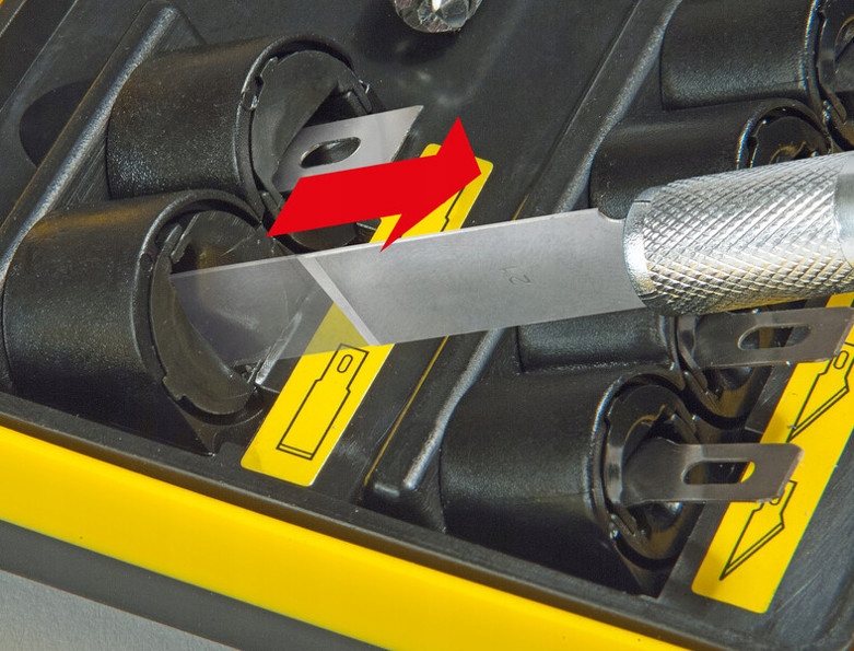 - Просто вставьте лезвие в держатель или поверните, чтобы снять лезвие. из кейса