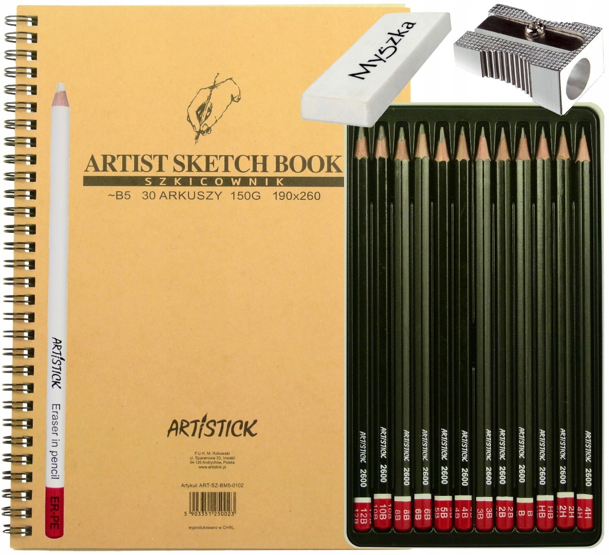 Набор Sketchbook B5 ARTISTICK карандаши 4H-B12 ластик
