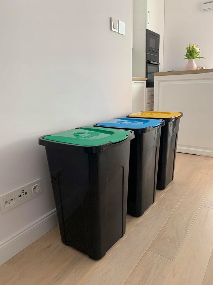 Каждый контейнер изготовлен из высококачественного пластика. Они идеально подходят для каждого дома и офиса, где важна ежедневная сортировка мусора. Соответствующие цвета, близкие к общепринятой маркировке, позволят легко сопоставить вид выбрасываемых отходов с отдельными контейнерами. Откидная крышка предотвращает выход неприятных запахов снаружи корзины. Идеально подходит для сортировки мусора на пластик, бумагу и стекло.