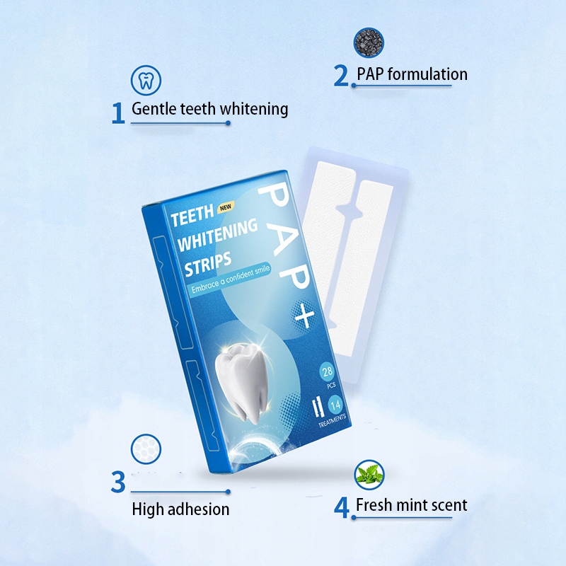 Отбеливающие полоски, также известные как полоски для отбеливания зубов, изготовлены из гибкого материала, покрытого тонким слоем отбеливающего геля, который содержит перекись водорода в концентрации 0,05% и т. д., а также перекись карбамида в концентрации 0,2% и т. д.
