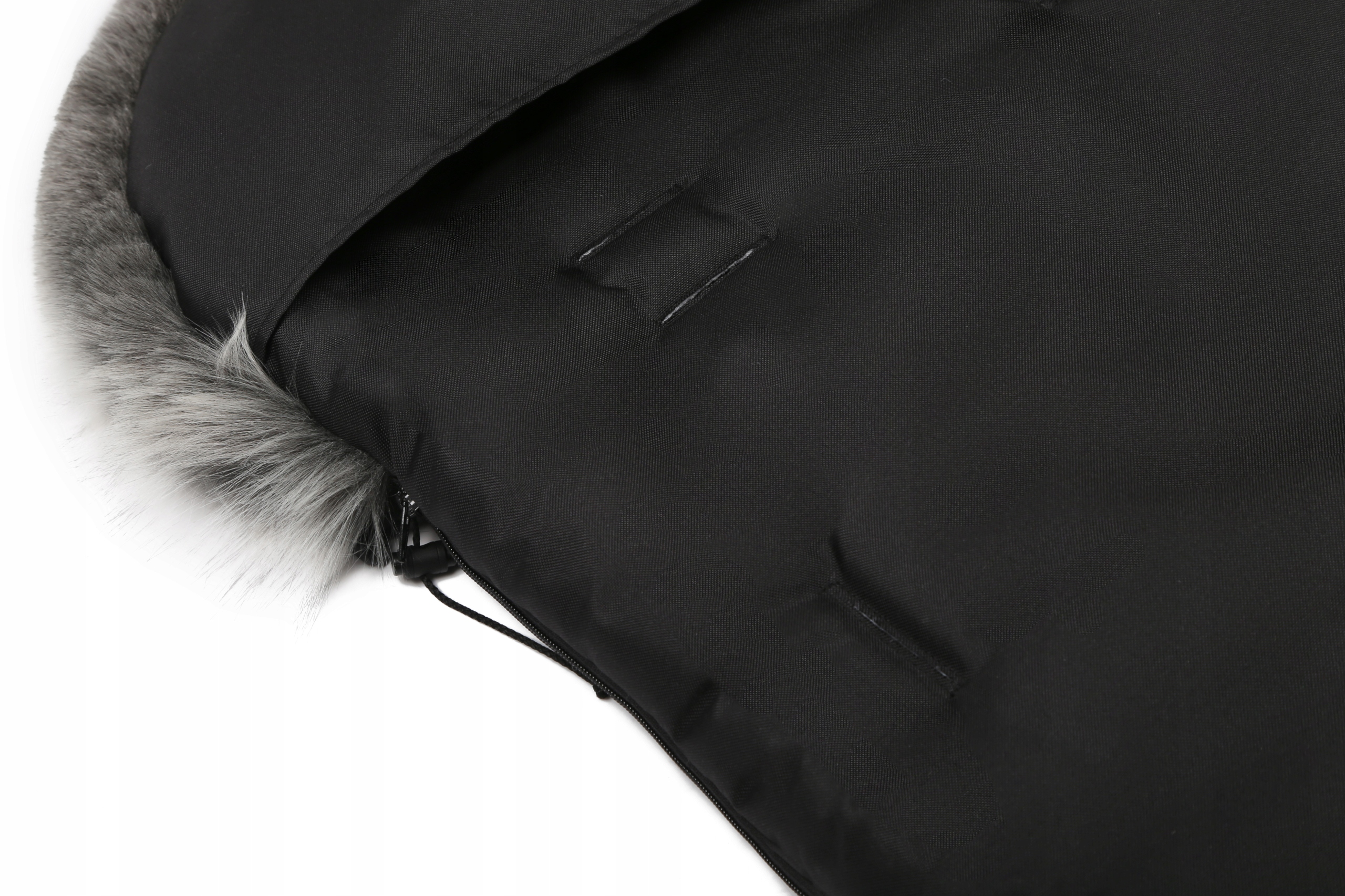 - В верхней части регулируемый капюшон с искусственным мехом, защищающий от ветра. Мех отстегивается.