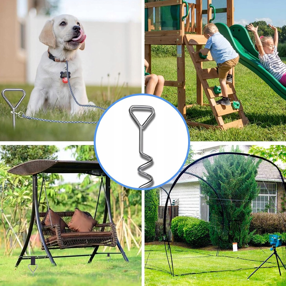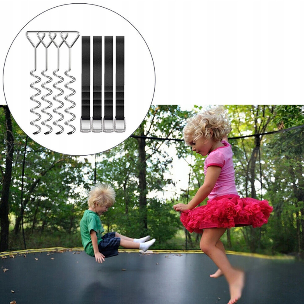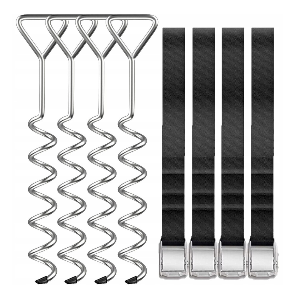 ressive set: Набор заземления состоит из четырех якорей почвы для повертки в землю и четырех ремней с длинным 2,5 -метровым ремнем с закрепленными пряжками! Якоря идеально подходят для обеспечения батутов, палаток, беседки, садовых сарая, девственницы и ставни с ветра!