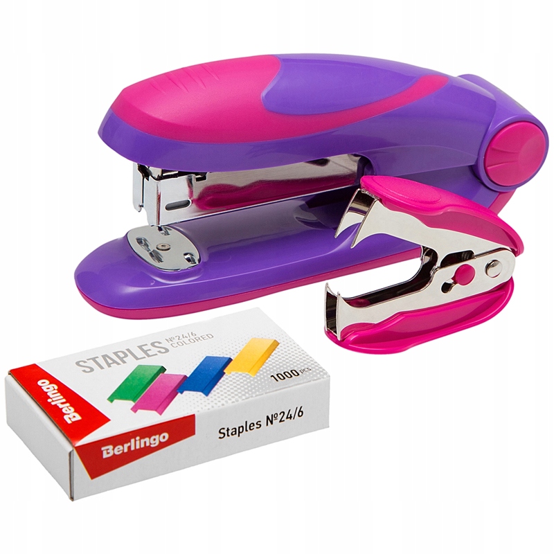 Набор степлера Fuze фиолетовый 24/6,26/6, скобоудалитель, цветные скобы, Berlingo