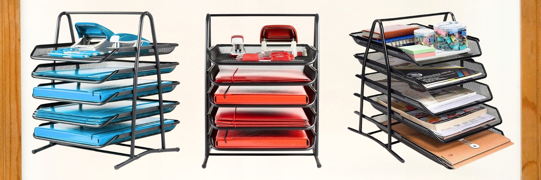 Пятиуровневая структура предлагает достаточно места для хранения документов, файлов, писем и журналов формата А4. Органайзер легко складывается, экономит ценное место на столе и обеспечивает легкий доступ к документам.