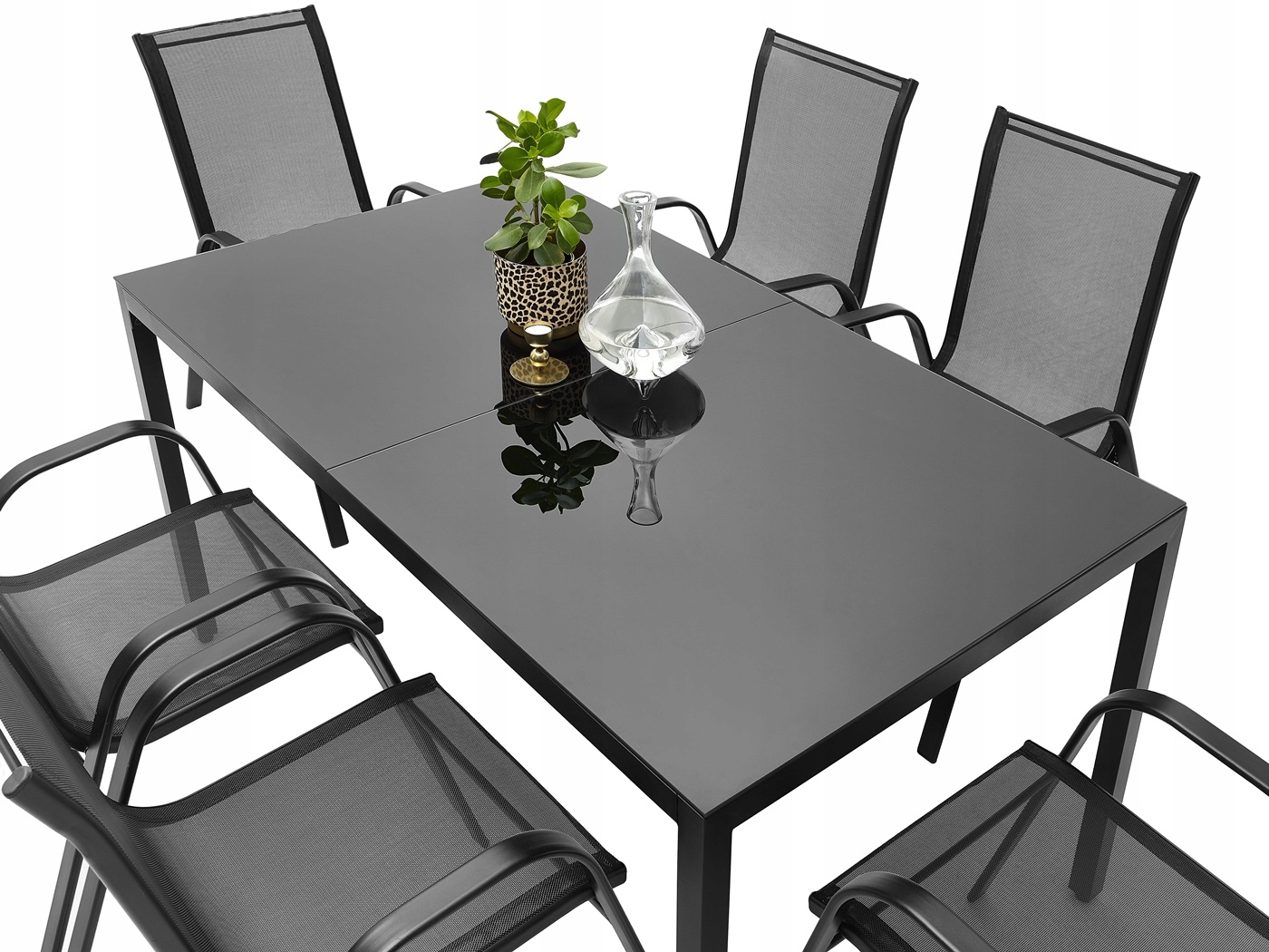НАБОР САДОВОЙ МЕБЕЛИидеально подходит для вашего сада. Каркас имеет двойное порошковое покрытие, что делает этот продукт идеальным для использования как внутри, так и снаружи помещений. Сиденье и спинка стула имеют черную гибкую текстильную обивку для максимального комфорта. Имеет две боковые спинки. Используемые материалы не требуют частого ухода, устойчивы к погодным условиям и не требуют специальных средств по уходу. Ножки дополнительно оснащены пластиковыми накладками.Стол имеет столешницу из черного закаленного стекла. 5 мм.