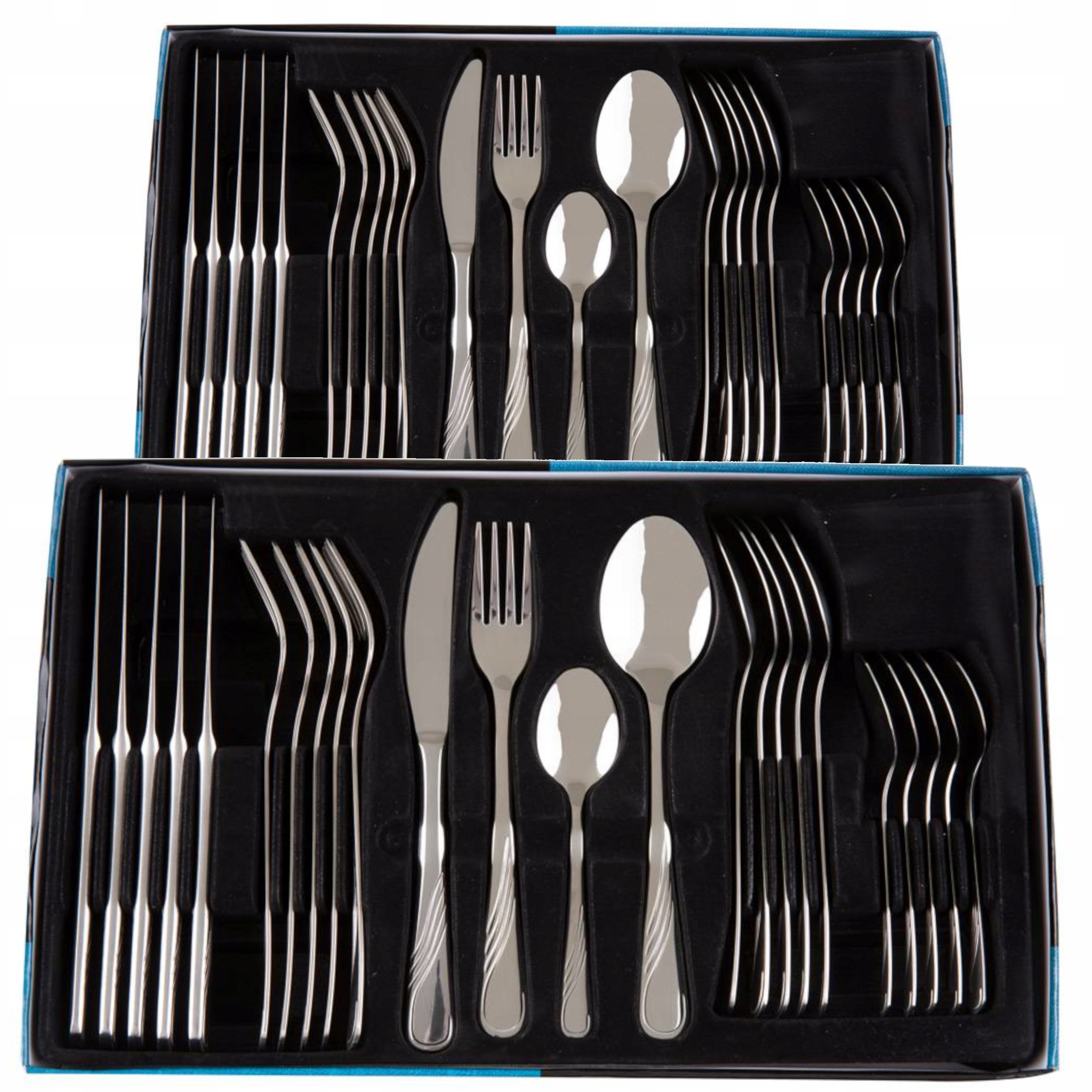 Набор столовых приборов на 12 персон изготовлен из высококачественной нержавеющей стали с повышенной коррозионной стойкостью. Столовые приборы прекрасно сбалансированной формы имеют изящный узор, подчеркивающий обтекаемые формы ножей, ложек, вилок и чайных ложек.