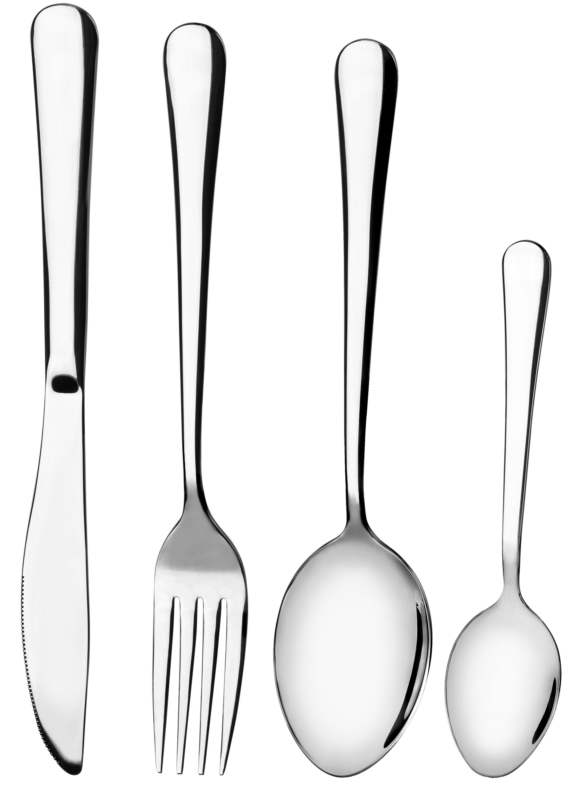 - Набор включает в себя: 6 столовых ложек, 6 вилок, 6 ножей, 6 чайных ложек