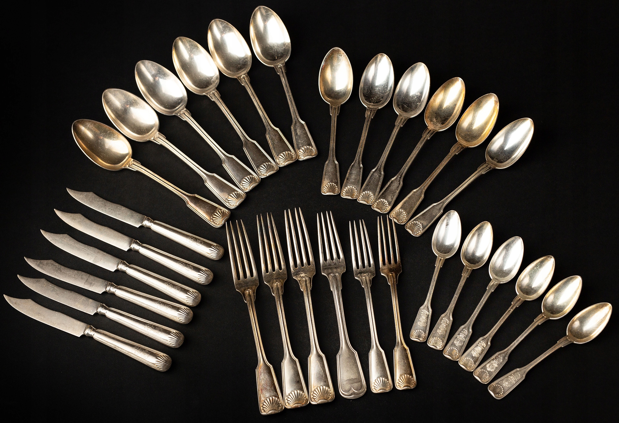 Предметом аукциона является набор серебряных столовых приборов, изготовленных в мастерской варшавского ювелира Теодора Вернера. В наборе 30 элементов: