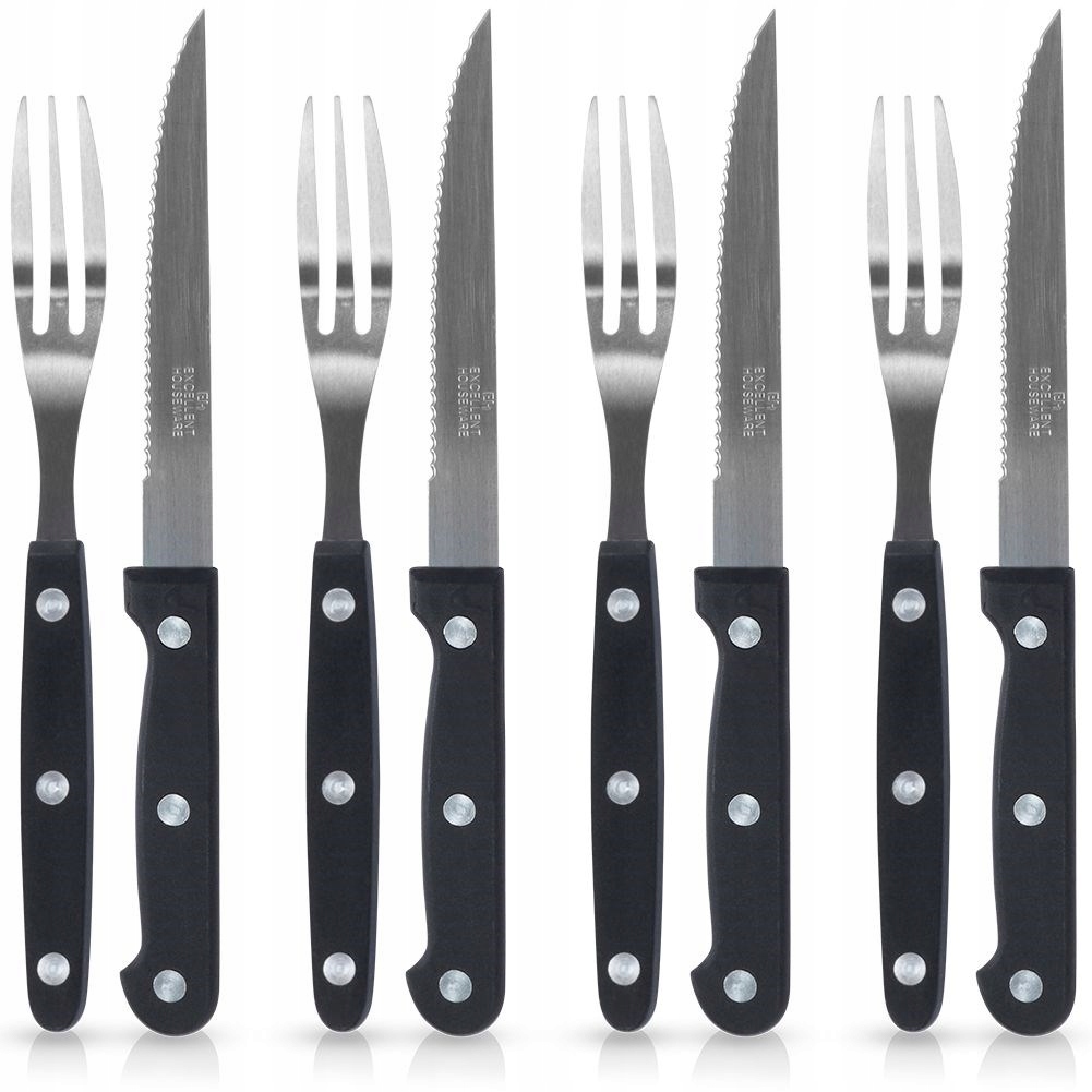 ✅ ПОЛЕЗНО - Набор столовых приборов на четыре персоны для стейков и бургеров. В набор входят четыре вилки длиной 19 см и четыре ножа длиной 21 см.