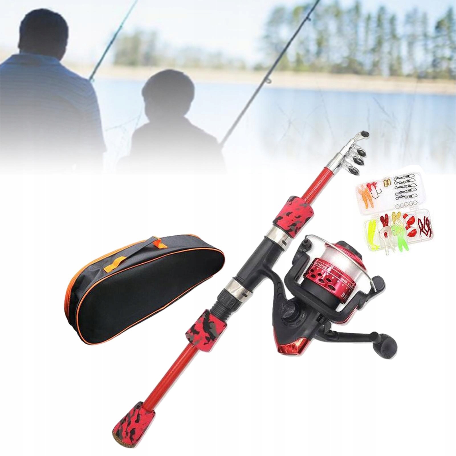 [Комбинация стержня и катушки для детей]: рыболовная стержень для детей, портативный телескопический стержень с катушкой, включая ящик для приманки и приманку, мешок для хранения, до различных ситуаций на рыбалке, таких как резервуары для воды, пруды, реки, озера, океаны и т. Д. От 38,5 КМ до 120 с.