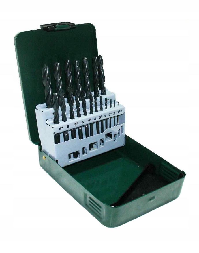 - 19 сверл из быстрорежущей стали спиральных для ручных и стационарных дрелей.