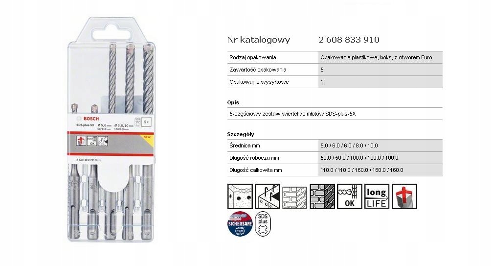 BOSCH SDS DRILL PLUS-5X KPL 5шт 5/6/6/8/10*160 2608833910