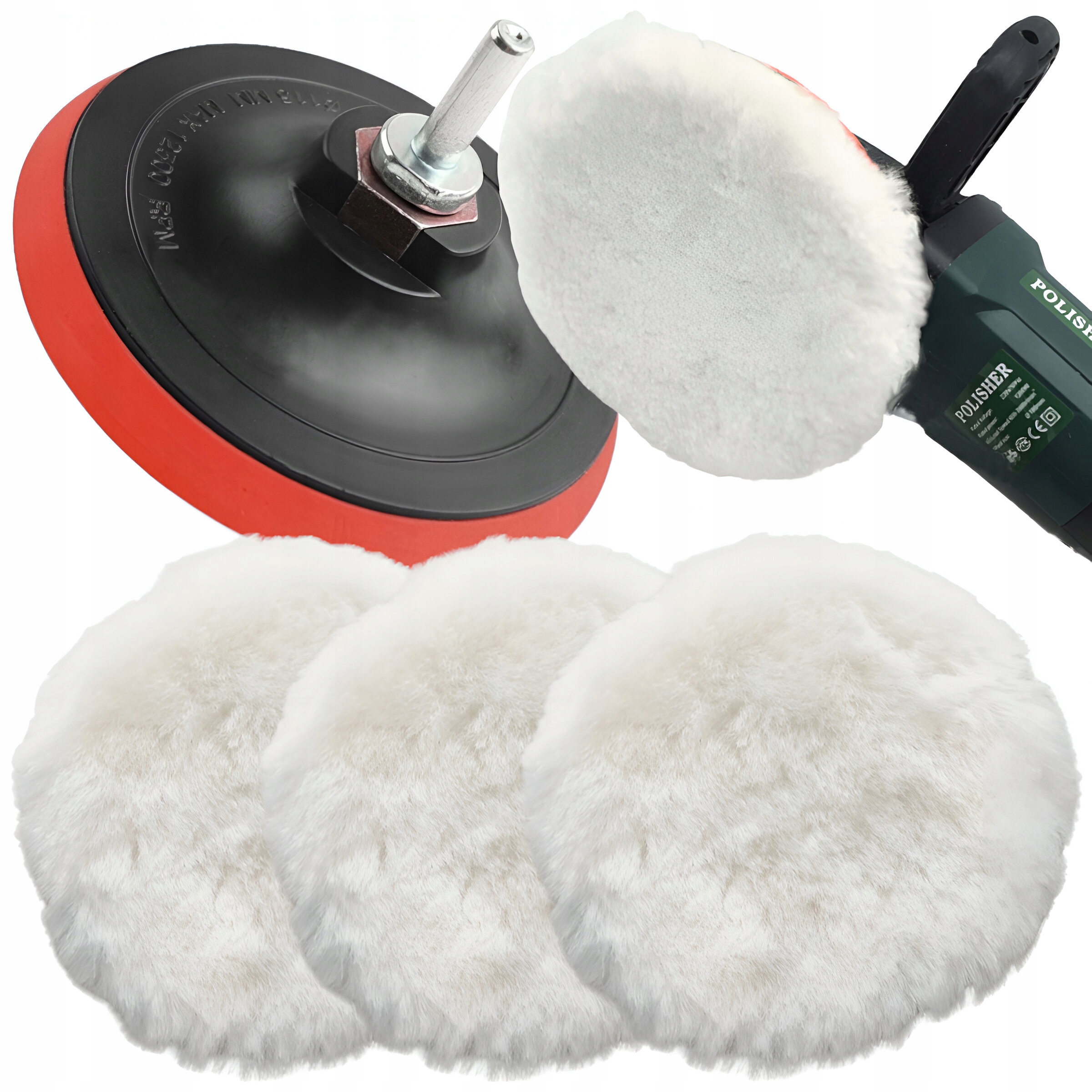 НАБОР СВЕРЛ ДИСКОВАЯ ПОДУШКА НА ЛИПУЧКЕ МЕХОВАЯ ПОЛИРОВОЧНАЯ ПОДУШКА 3x ШЕРСТЯНАЯ ПОДУШКА 125 ММ