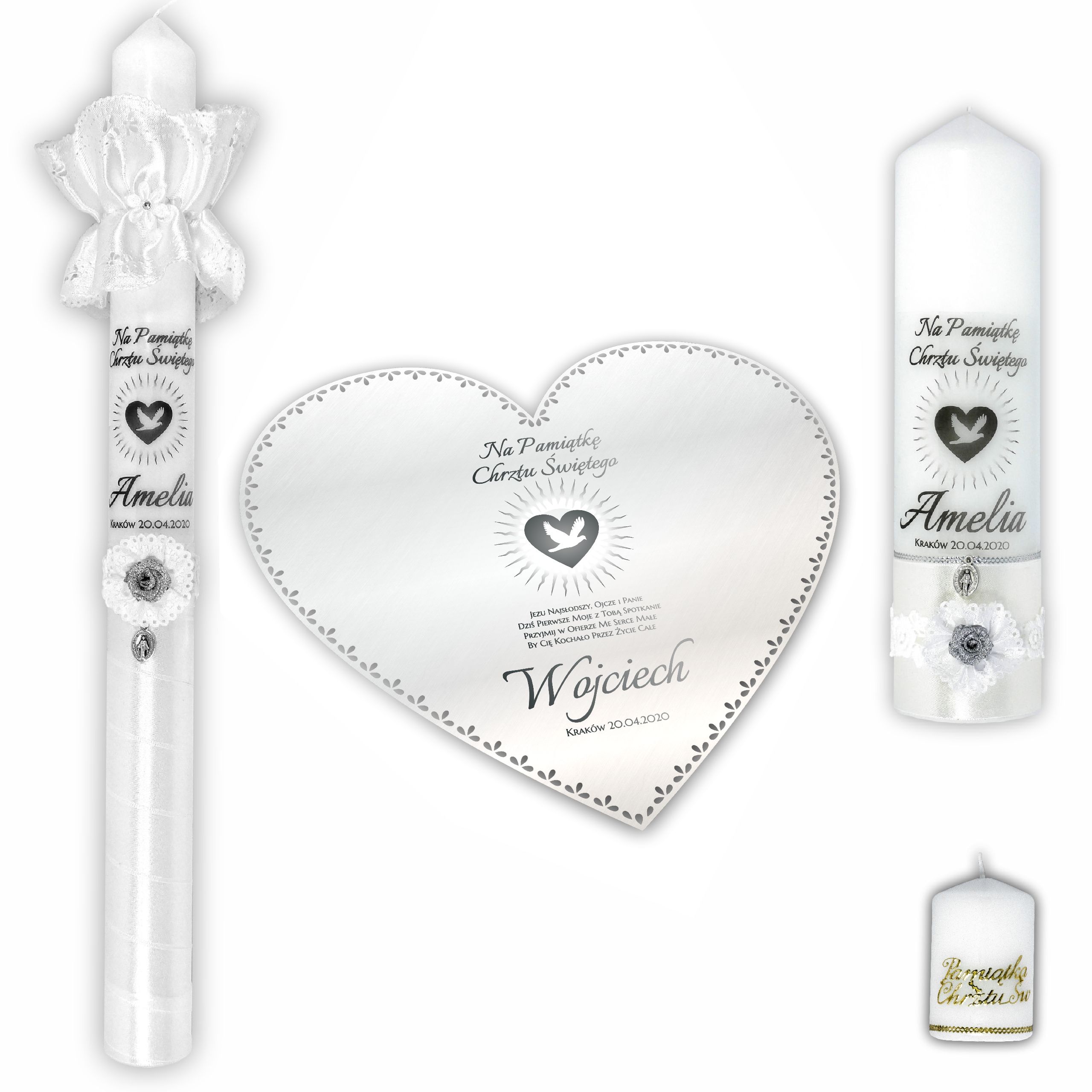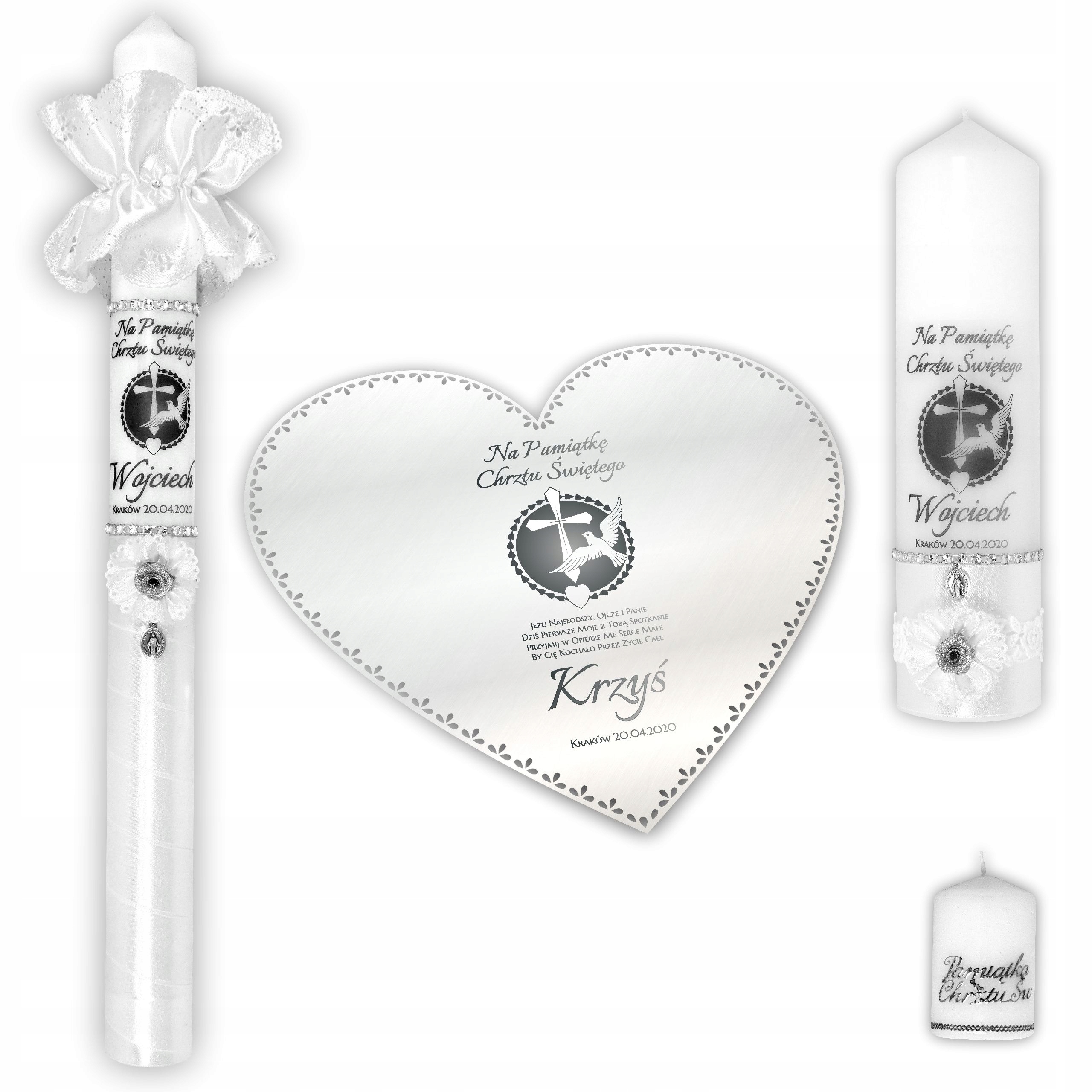 В настоящее время мы единственные продавцы на Allegro, которые предлагают персонализированные настольные свечи для крещения.