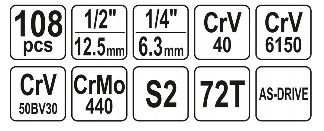 Торцевые ключи и торцевой привод изготовлены из прочного инструментального материала. типа хромованадиевой стали CrV 50BV3.