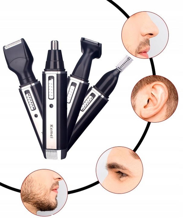 Кемей 4в1 триммер для бороды, носа, ушей, бровей