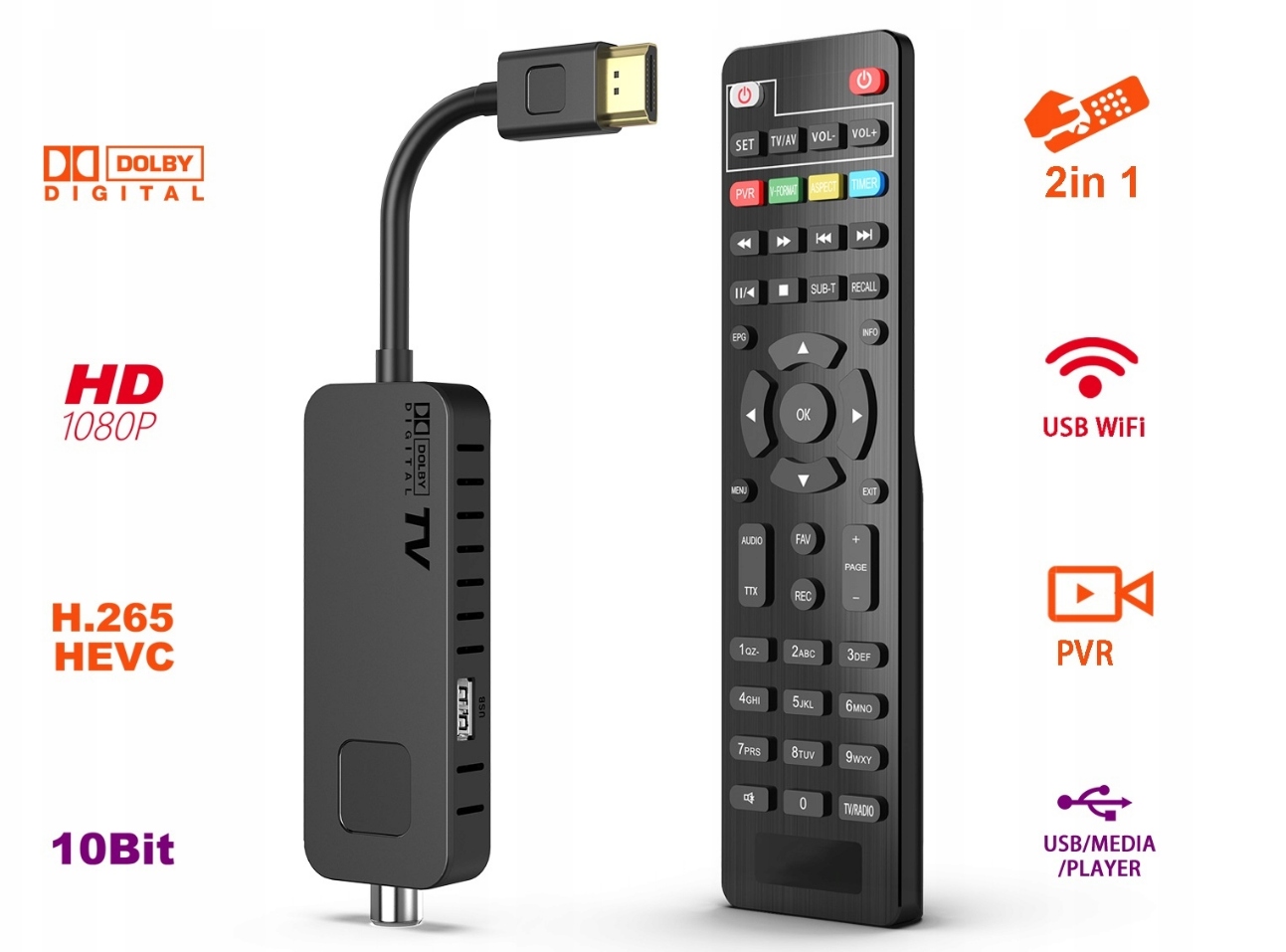 Tuner Set Tuner Digital HDMI TV HD DVB-T2 H.265 HEVC+Дистанционное управление и аксессуары