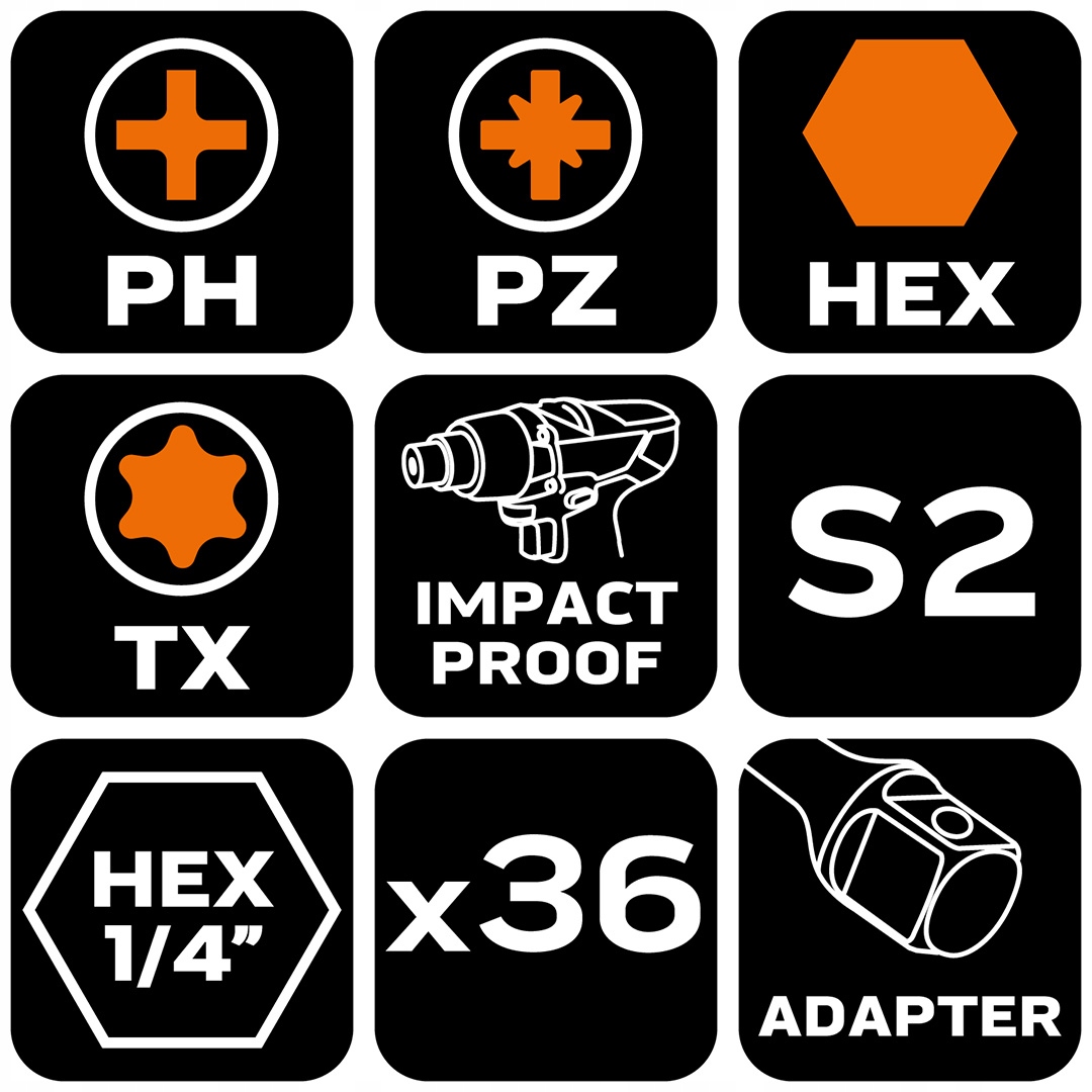Набор ударных бит, 36 шт.