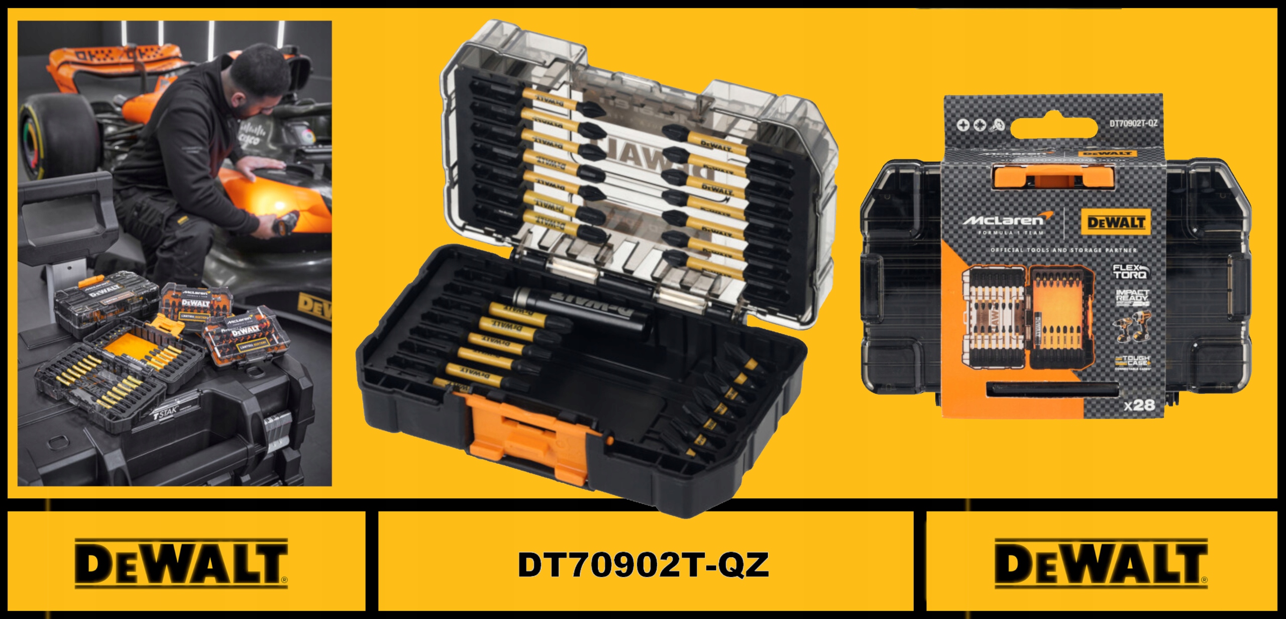 - Набор бит DeWALT DT70902T из серии McLaren представляет собой высококачественный набор бит FLEXTORQ, предназначенный для профессионалов и требовательных пользователей.