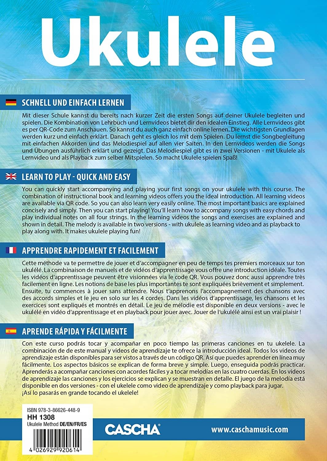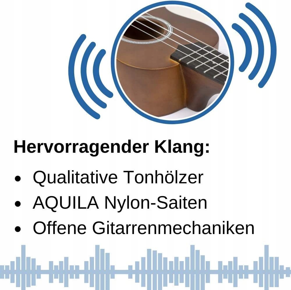 - Полный комплект, включающий: укулеле сопрано, 3 медиатора, трость, книга для обучения игре на гавайской гитаре (без польского языка), обложка