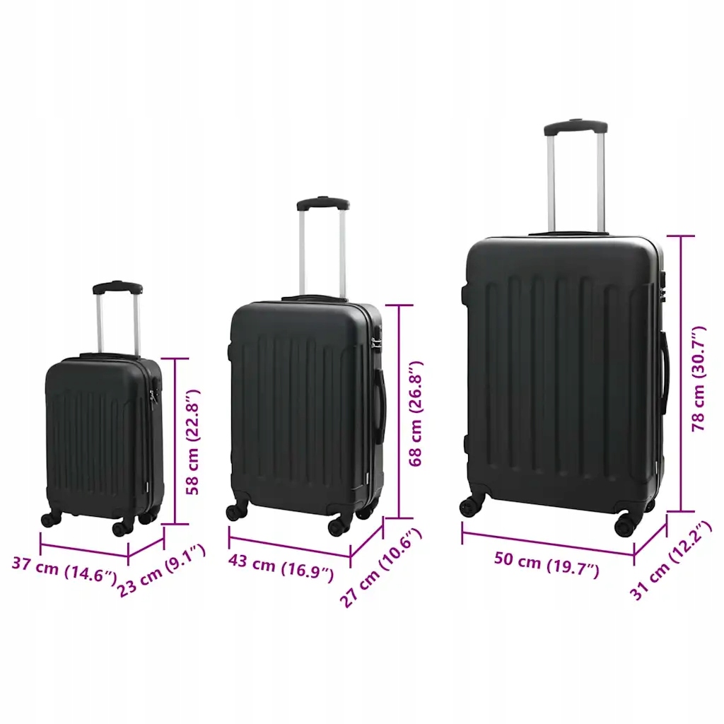Набор чемоданов 3 шт. Черный 50 x 31 x 78 см АБС Пластик, сталь