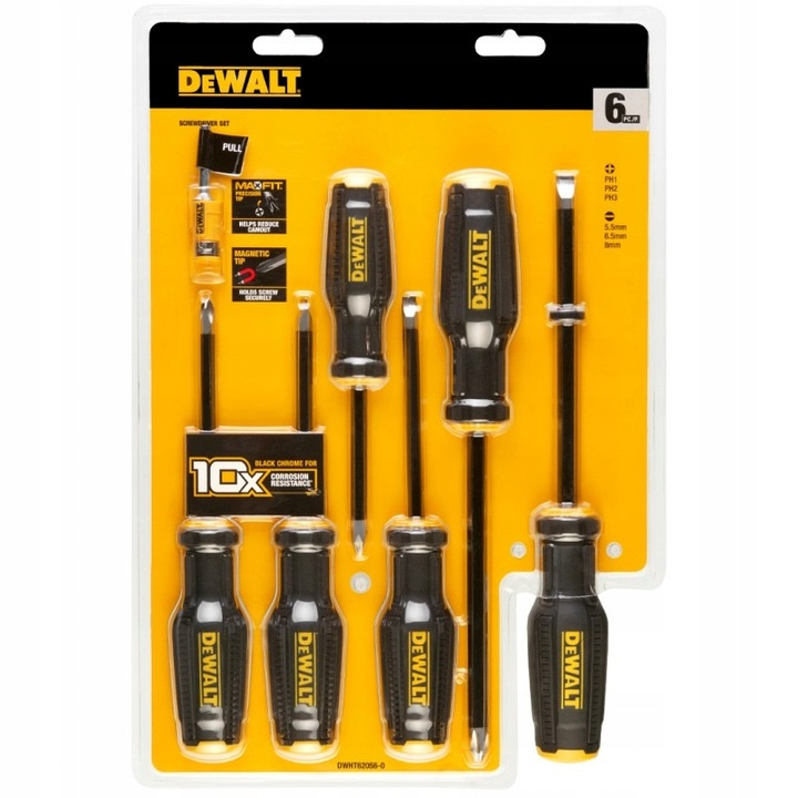 НАБОР ОТВЕРТОК, 6 ШТ. С МАГНИТНЫМ НАКОНЕЧНИКОМ DeWALT DWHT62056-0