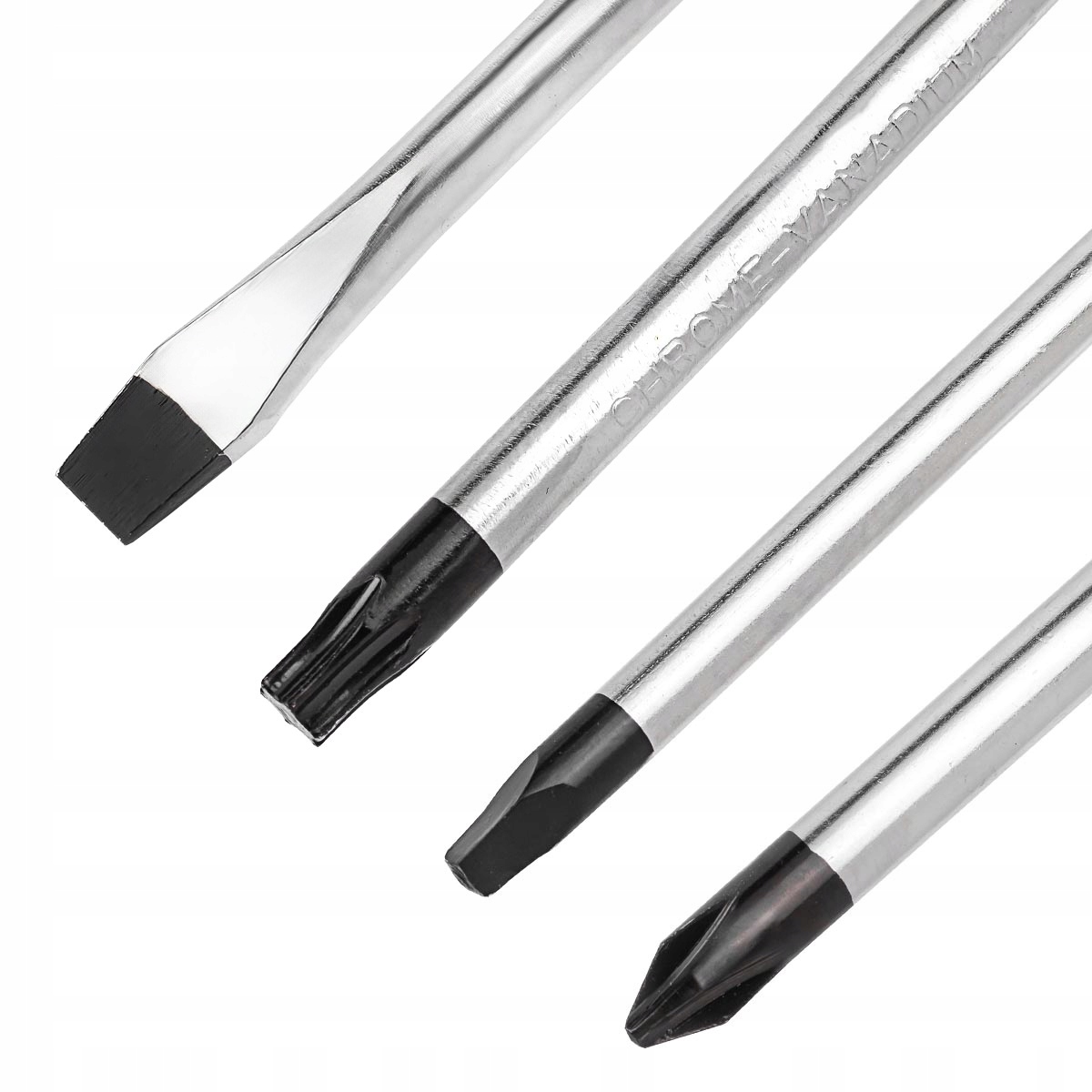 - 8 Плоских отверток: 8x150/6x150/6x100/5x125/5x100/5x75/4x100/3x75 мм