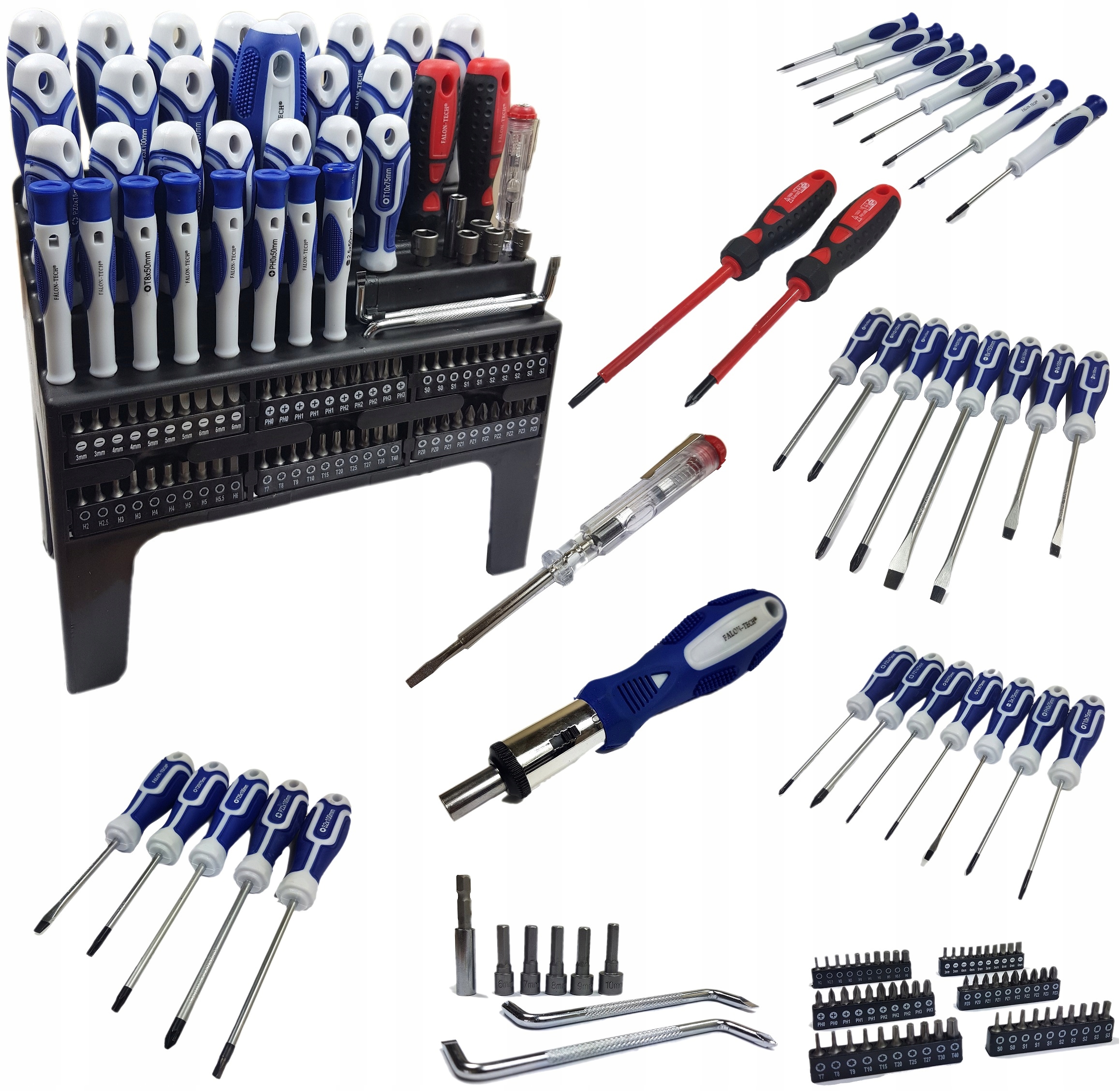 НАБОР ОТВЕРТКИ, ОТВЕРТКИ, БИТЫ, ПОДСТАВКА, 100 ЭЛЕМЕНТОВ