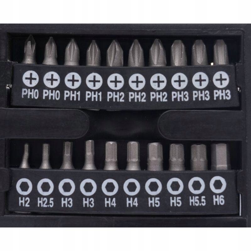 - 10 плоских битов: 3/3/4/4/5/5/5/5/5/6/6/6/6 мм