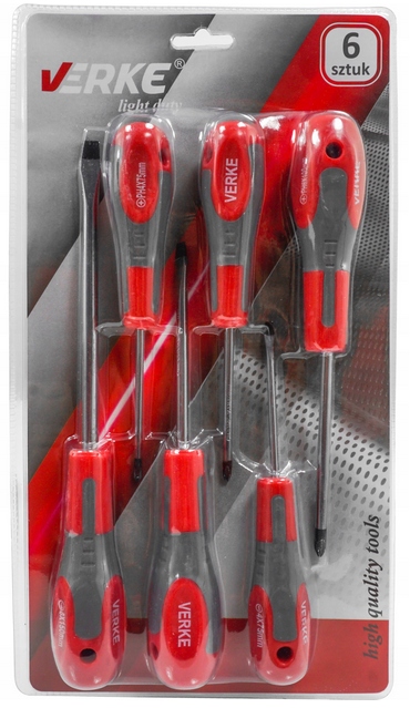 Набор отверток из хромованадиевой стали (CrV). Эргономичная ручка обеспечивает надежный захват инструмента и гарантирует эффективную и точную работу. В набор входят три плоские отвертки и три крестовые отвертки. Размеры отверток подобраны с учетом винтов, используемых в каждом доме и мастерской.