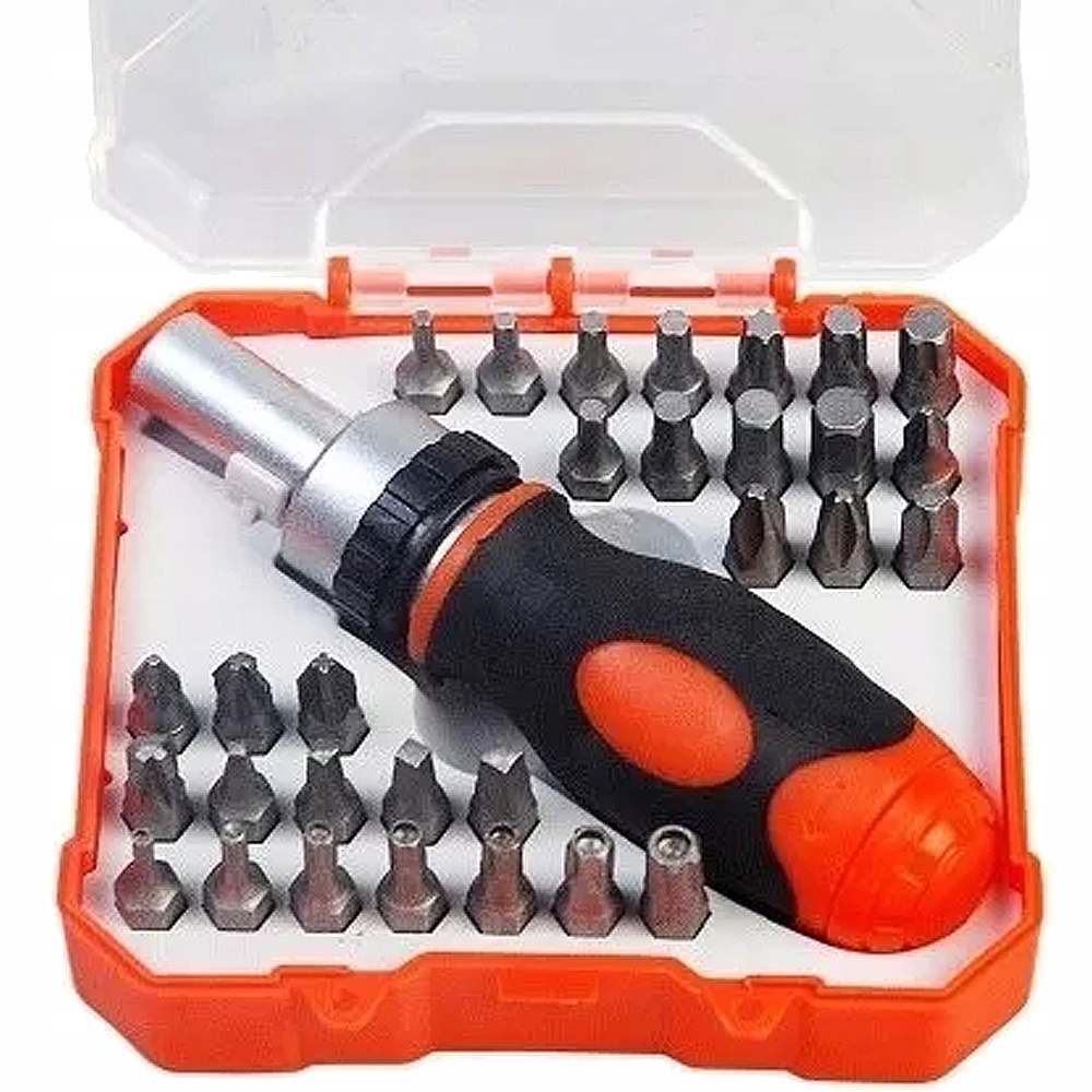 Набор бит с отверткой отлично подойдет для дома, гаража или сервисного центра. Универсальный характер продукта допускает практически неограниченное применение. Он состоит из 30 бит и отвертки. Набор упакован в практичный небольшой чемодан. Он оснащен специальными ручками для хранения головок и бит. Это значительно облегчит их хранение.
