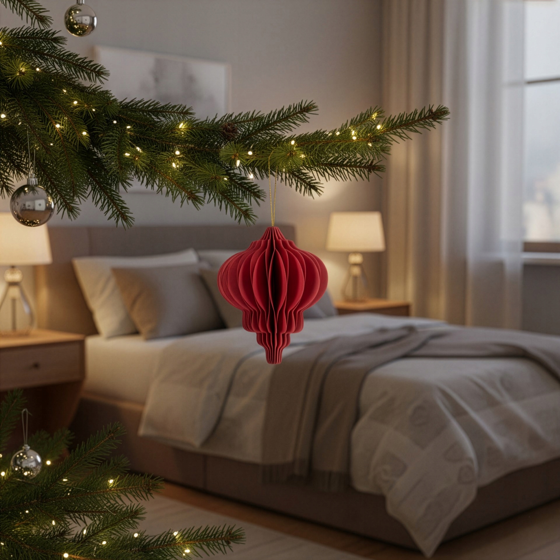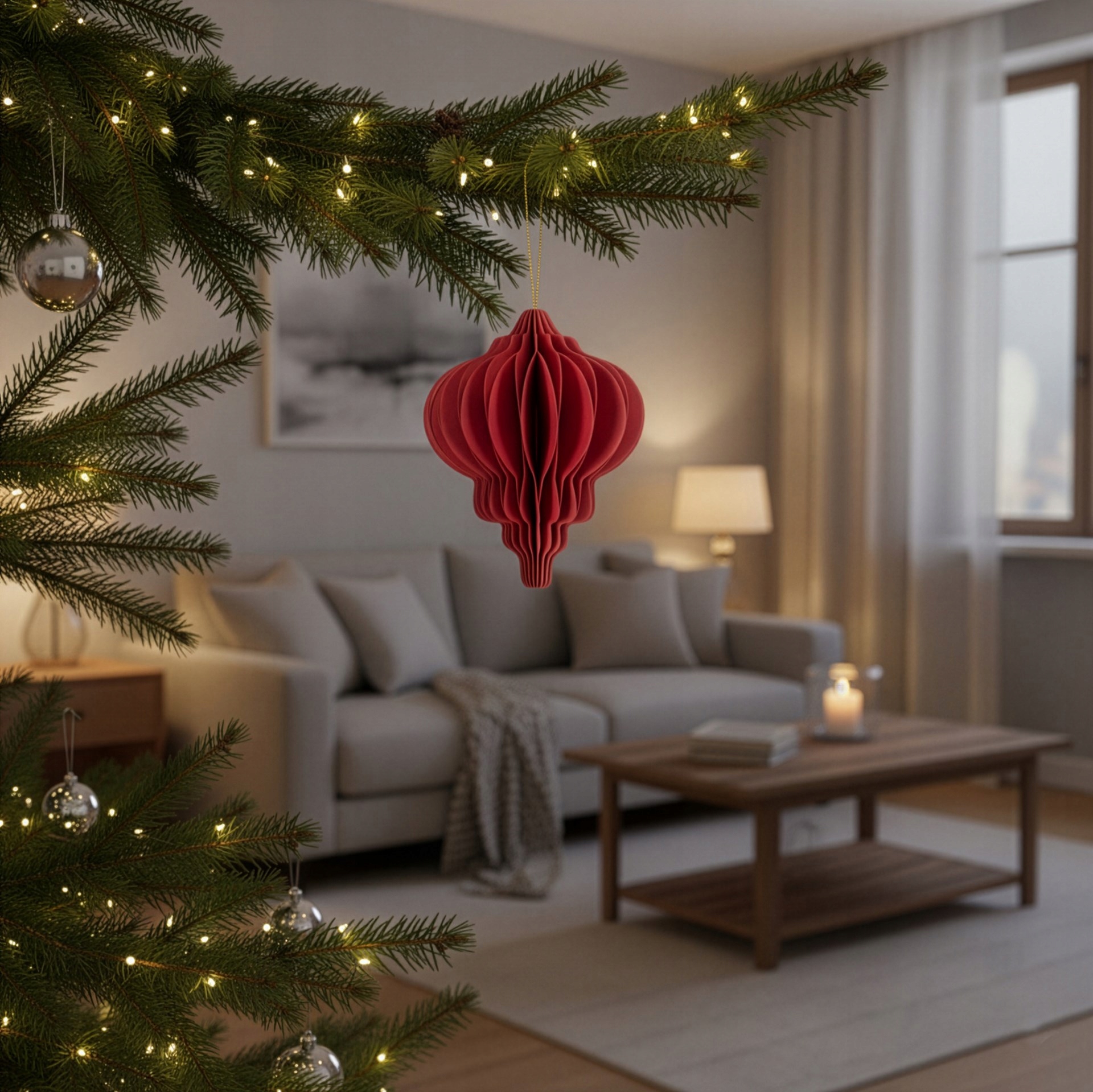 Придайте неповторимый шарм своей елке с помощью этого стильного кулона из нежной бумаги. Его структура-гармошка и золотая струна придают ему чрезвычайно элегантный вид и тонко отражают свет елочных гирлянд. Это идеальное дополнение к украшениям в классическом, скандинавском или винтажном стиле. Магнитная застежка обеспечивает стабильную форму, а структура бумаги делает ее легкой и удобной в использовании.