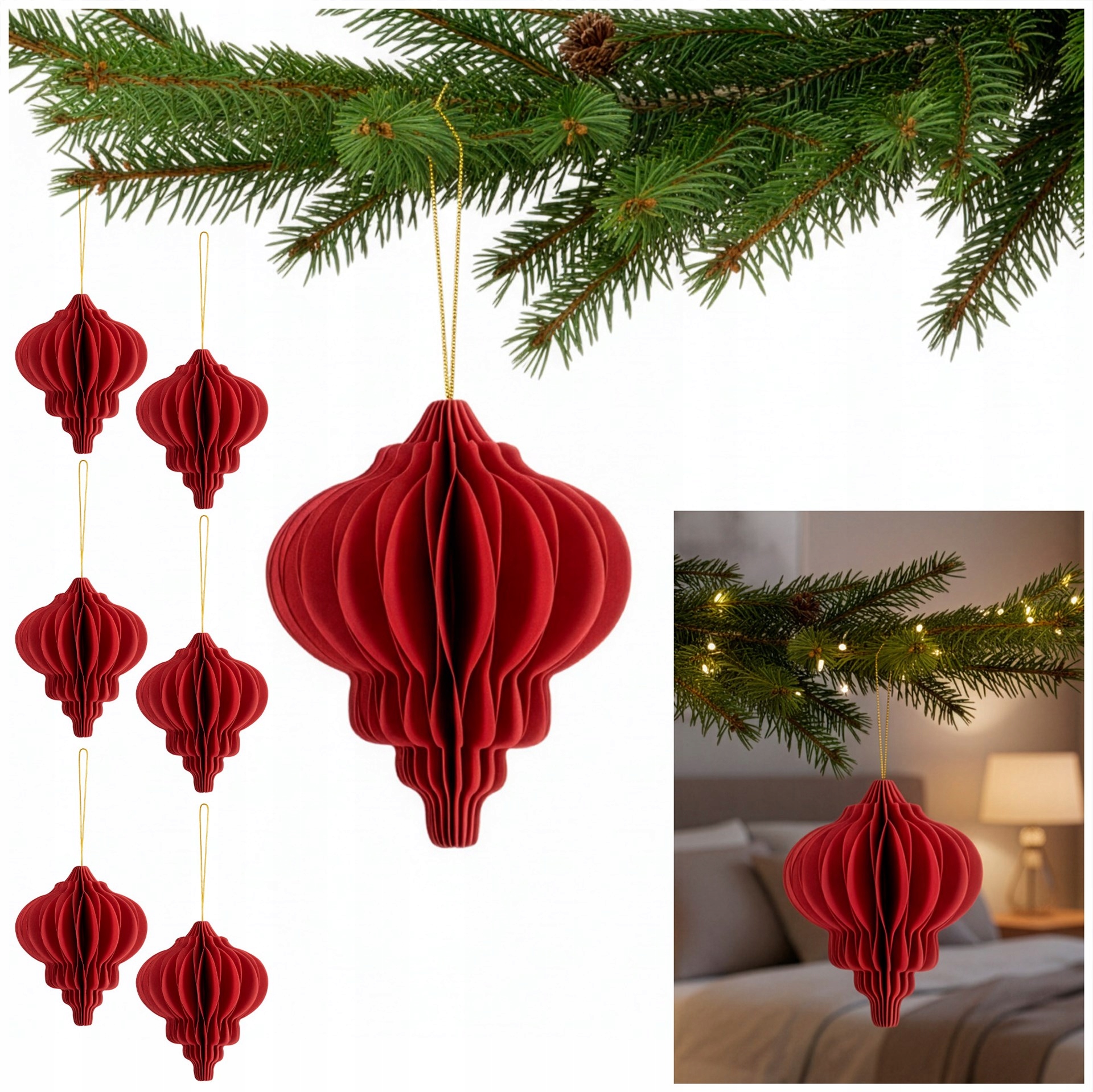 НАБОР БУМАЖНЫХ РОЖДЕСТВЕНСКИХ ШАРОВ ВЕШАЛОК ИЗ 6 ШТ. УКРАШЕНИЯ ДЛЯ РОЖДЕСТВЕНСКОЙ ЕЛКИ 12 см