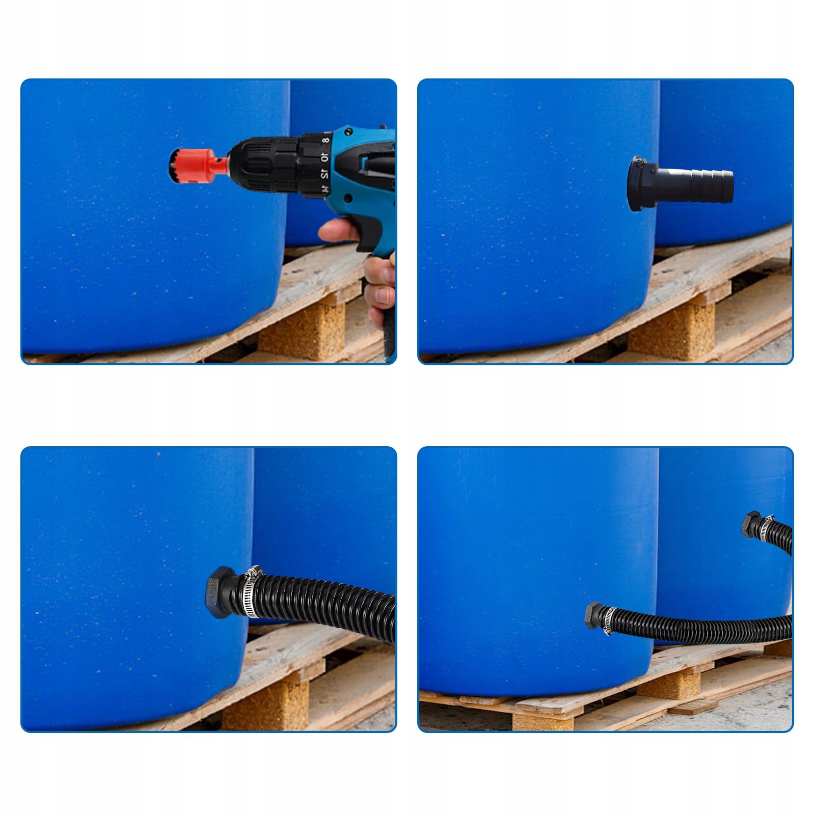 предварительно обработайте отверстие для дождевой воды, удалите заусенцы, а затем установите разъем ствола для дождевой воды и соедините шланг. В случае более крупного водоснабжения бочка для дождевой воды находится в 1 дюйм от двух форсунок, что удобно и быстро. Состоит из двух винтовых соединений шлангов с фиксирующей гайкой.