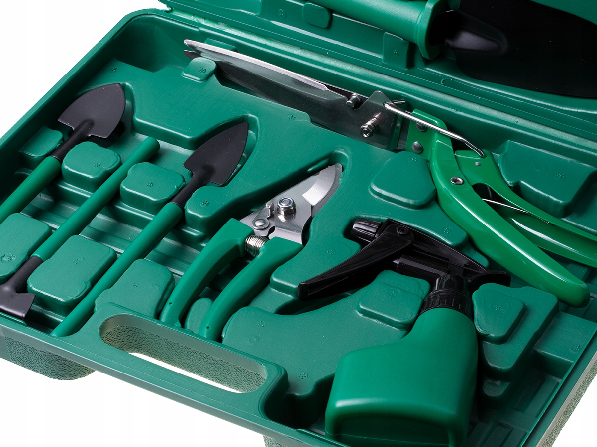 состоит из 10 элементов, необходимых для небольших садовых работ, таких как утомительный земля или преувеличивающие цветы.