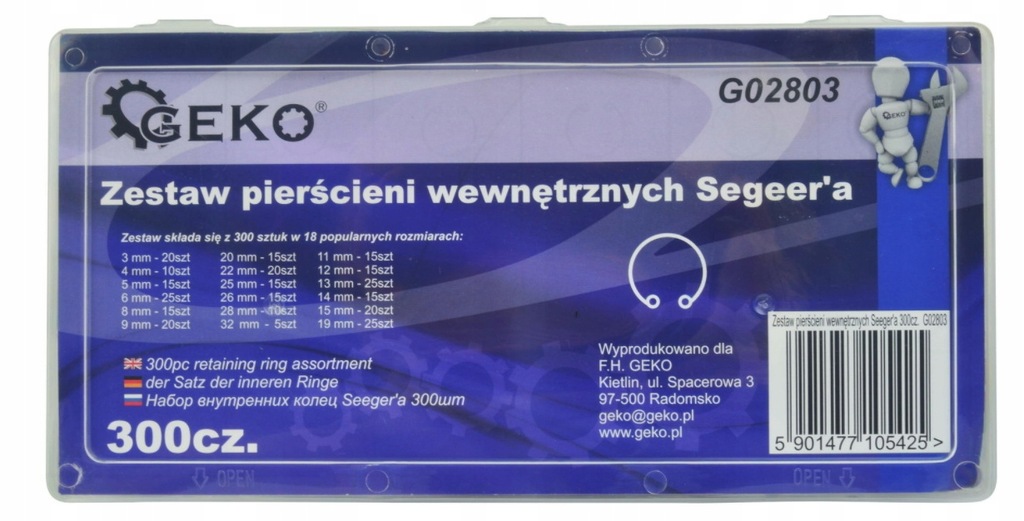 Набор внутренних колец 300 Seeger размером от 3 до 32 мм.